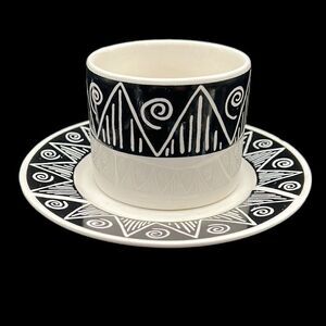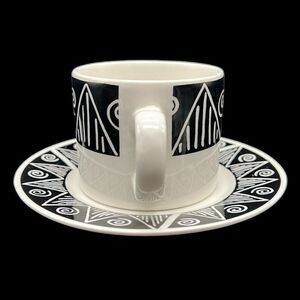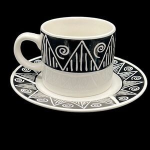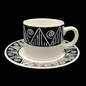 Mug & Saucer Majesticware by Oneida Shadow Black White Eclectic Stoneware 8 oz