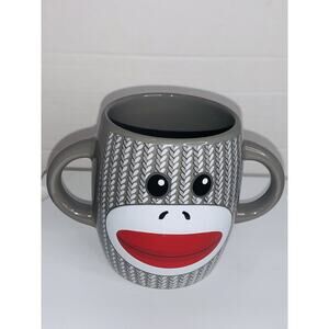 Sock Monkey Galerie Double Handle Gray Ceramic Coffee Tea Cocoa Mug Cup 16Oz EUC