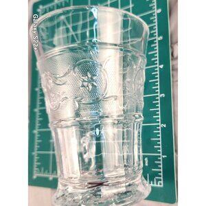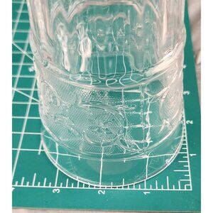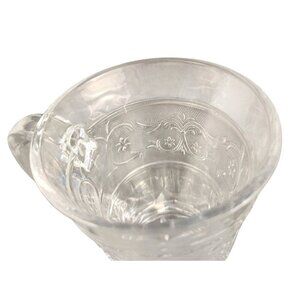 This intricately etched glass mug combines elegance and functionality. Its floral design and sturdy handle add sophistication to beverages and décor.