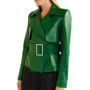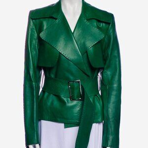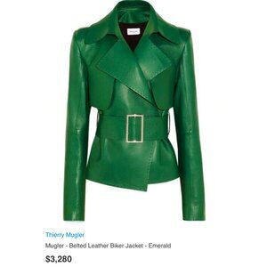 Mugler - Belted Leather Biker Jacket - Emerald Size 38 FR, 6-8 US