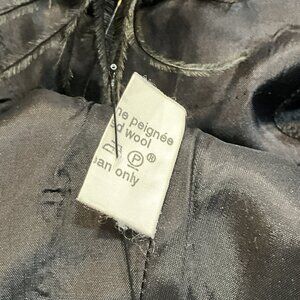 Made from 100% combed wool, it boasts a classic solid black color with the added flair of feather accents, adding a touch of designer sophistication to your look.
