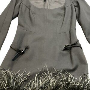 Mugler Black Wool Cocktail Dress with Feather Trim Size S