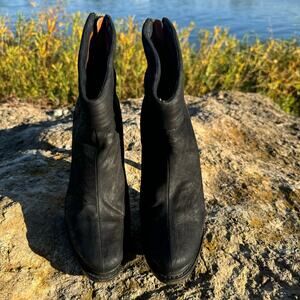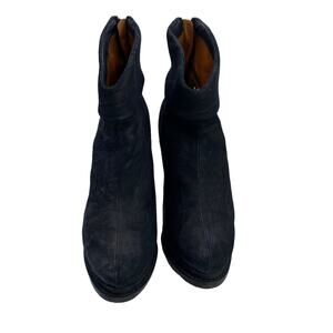 Mugnai Women Black Crinkled Nubuck Leather Almond Toe Heeled Platform Booties 37