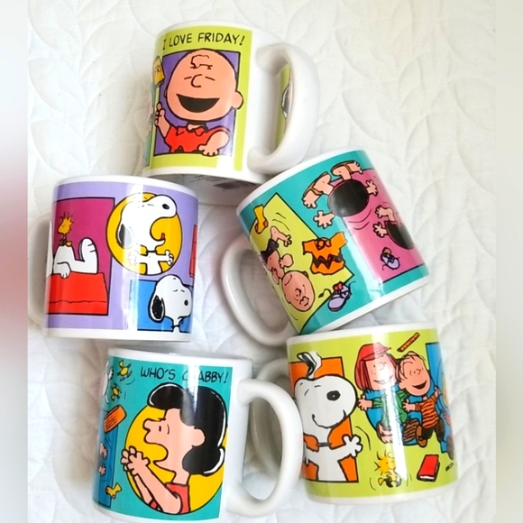 These fun coffee mugs are a fun way to drink your daily jaffa. They are dishwasher safe. They have never been used. I bought them hoping to bring to my boyfriends family in Europe who adore the peanuts gang. But since travel and luggage rules have changed, they have been sitting in a box for awhile now. They also have become a Peanuts collector's dream.