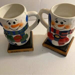 Bay Island/ Kitchen! S’more Snowman Mugs Set of two!! Right and Left Hand!! 2007