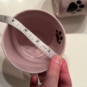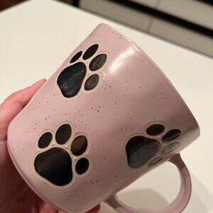 This is a listing for a set of 2 mugs tht are a pale pink with brown paw prints. This is a set of two and the mugs are new as pictured.