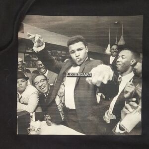 Stylish black hoodie with a unique graphic Muhammed Ali "Legendary" print. Comfortable and trendy. Perfect for casual wear.