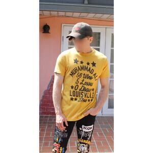 Muhammad Ali Louisville Tee Shirt Mens Medium Gold Wins Losses Draws Graffiti