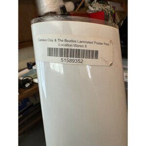 This vintage poster captures a historic moment featuring Muhammad Ali and The Beatles in Miami Beach, 1964. It's a black and white photographic print with a glossy finish, designed to preserve the iconic imagery. Ideal for collectors and fans of both boxing and music history.