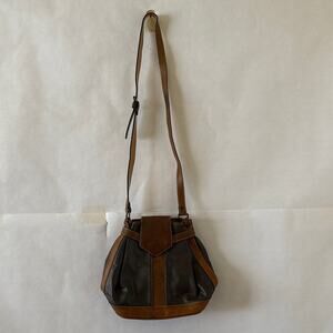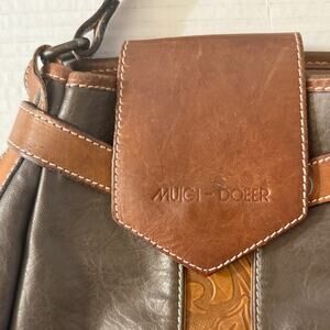 Muigi-Doer Two Tone Brown Leather Shoulder Bag Western Boho Vintage Style Purse