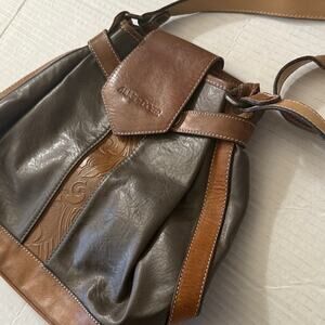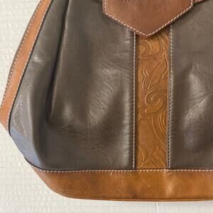 boho leather bag, two tone purse, western style handbag, vintage shoulder bag, genuine leather crossbody, embossed leather purse, Jack & Jones collection, Muigi Doer bag, rustic brown bag, artisan leather tote, bohemian fashion accessory, cowgirl chic style, coastal cowgirl, cabin, cottage, cottagecore, artisanal, tooled leather bag, tooled purse, jack and jones bag