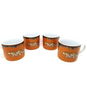 Muirfield Outback Set Of 4 Flat Leopard Motif Coffee Cups Excellent Condition You Will Be Getting 4 Cups In Excellent Condition. No Issues. They Will Be Wrapped Carefully And Fully Insured. This Pattern Is Discontinued. It Was Produced From 1999-2000 Only.