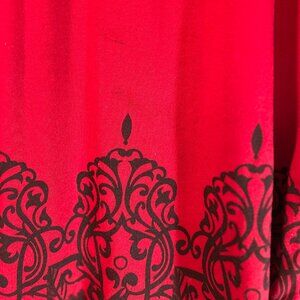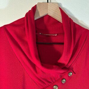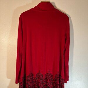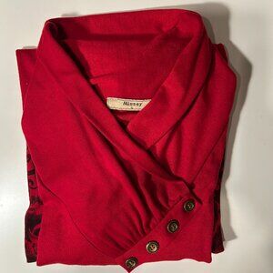 Muisey Red Long Tunic with Shawl Collar and Black Decorative Trim Size L