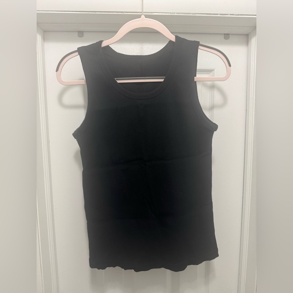 Classic black ribbed tank top with a scoop neckline from Muji. NWOT, selling because it’s a little too big on me. Really nice thick material, perfect for those looking to build their summer capsule.