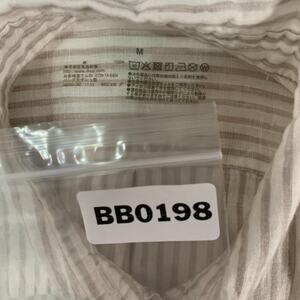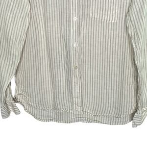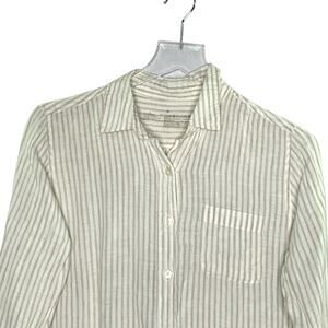 Muji M Womens Tan Striped Shirt Button Front 100% Linen Breathable