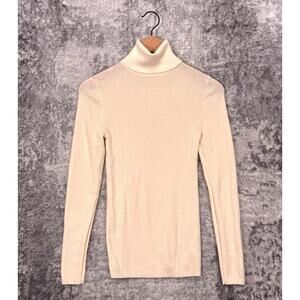 Muji Sweater Small Womens 100% Merino Wool Ribbed Turtleneck Fittedw