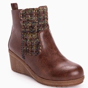 Muk Luk Novah Brown Tweed Wedge Ankle Boots