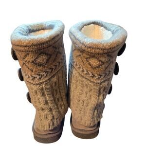 Muk Luks 10 Gray Knit Women's Insulated Cuffed Calf Height Boots Shoes Snow
