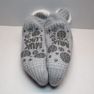 Muk Luks Aloe Infused Cabin Socks Slippers S/M Thick Stripes Grippers Grey