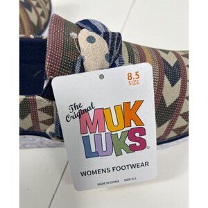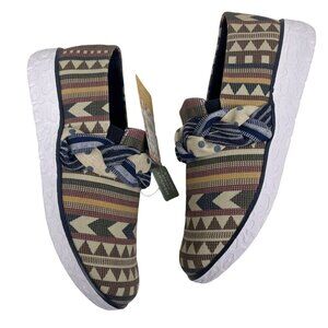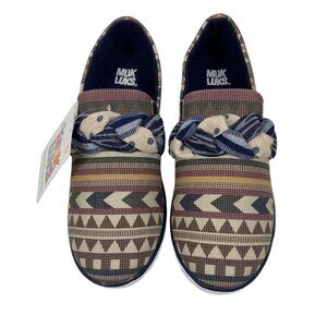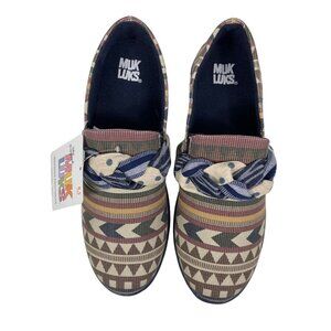 Muk Luks Beige Geometric Boardwalk Stroll Slip-On Sneaker Loafer Size 8.5 Aztec