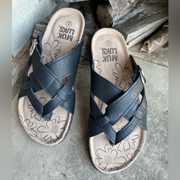 Muk Luks Black Criss-Cross women’s Sandals NWOB Sz-6. I
