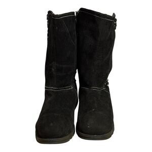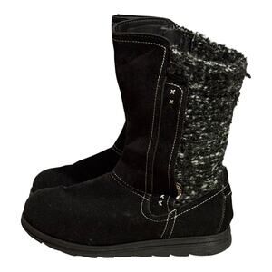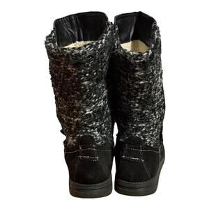 Muk Luks Black Knit Sweater Back Winter Boots Women's Size 10 Suede Faux Fur