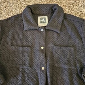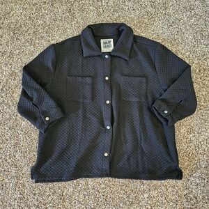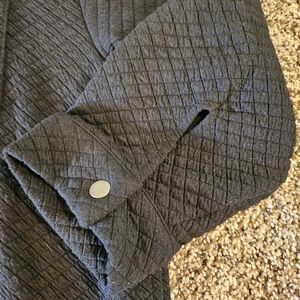 Quilted design with button closure. Two front pockets for convenience. Ideal for layering.