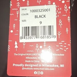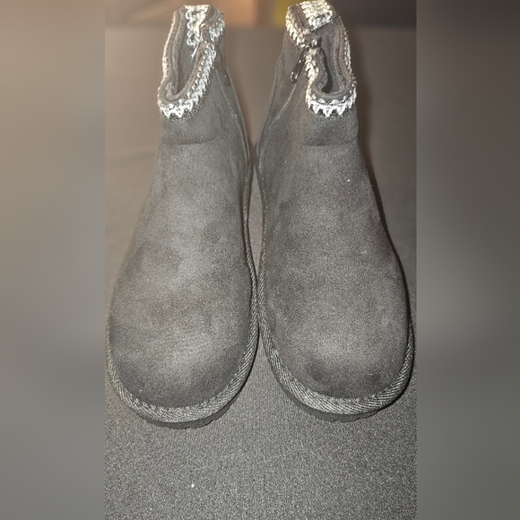 SOLD! Stylish Muk Luk black suede ankle boots with decorative trim.