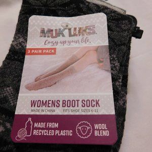 New, Women's Muk Luks 3-Pack Boot Socks. Fits shoe size 6-11, wool blend
