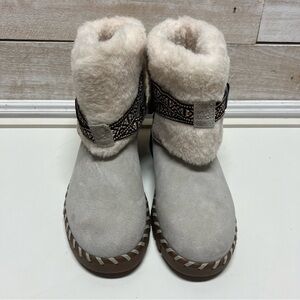 Muk Luks Boots Womens 7 Stone Gray Suede Cuffed Water Repellent Montauk New