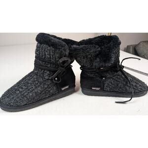 Muk Luks Boots Women's Black Knit Sweater Tie Size 8 Faux Fur Fall Winter Cozy