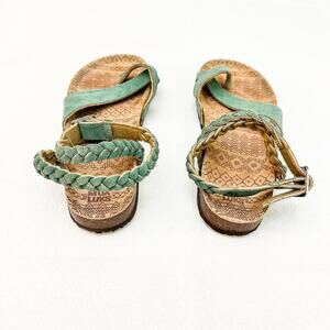 Muk Luks Braided Strap Sandals Green/Blue Suede Leather Sandal Size 8