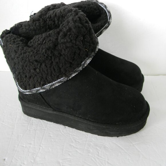 Muk Luks Faux Fur Ankle Boots - Addison BLACK FOLDOVER SHERPA LINED SZ 7, GOOD USED CONDITION.