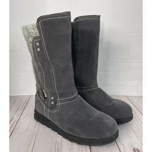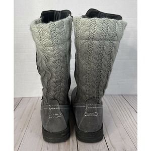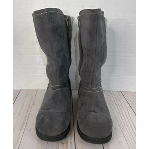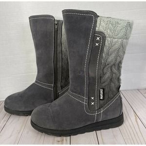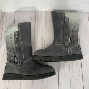 Muk Luks Gray Faux Suede Acrylic Knit Mid Calf Winter Boots Size 6 EUC