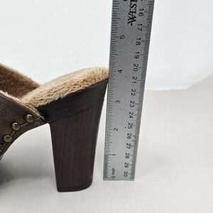 Muk Luks Heeled Mule Clog Sz 7 Kameryn Block Heel Studded Sides Faux Fur Studded