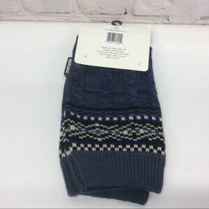 Muk Luks Knit Boot Cuffs/Toppers 2 Sets Nordic Dot Moccasin Brown /Fairisle Blue