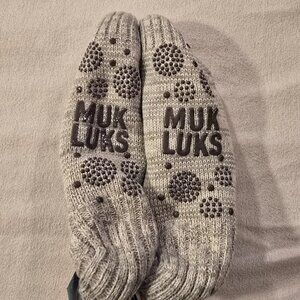 Muk Luks L / XL NEW Shortie Cabin Slipper Chenille Plush Lined Cabin Women Socks. NEW Womens Size 8-10. Bought from Kohl's Flower Fairisle UPC 03397760019. Style 1300055-103. Acrylic & Polyester Faux Fur