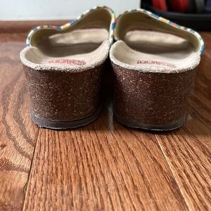 Muk Luks Lea Striped Canvas Slides Cork Wedge Size 7