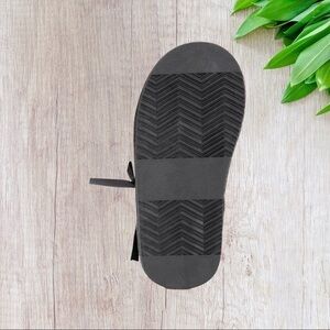 Features: Pull-on. Cushioned insole. Butterfly print. Tacked bow detail. Faux fur cuff. Grip sole.