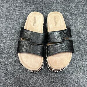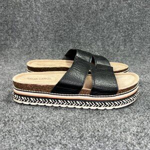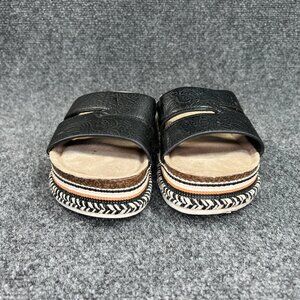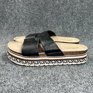 Muk Luks Platform Sandlas Women's Size 9 Black Leather Espadrille Comfort Slides