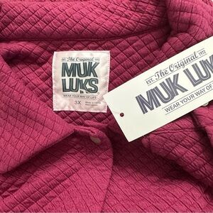 Muk Luks Quilted Shacket Pockets Silver Snap Buttons Berry Size 3X Lounge Comfy is New With Tags.