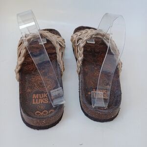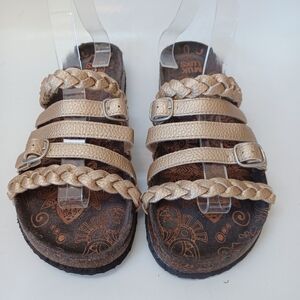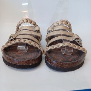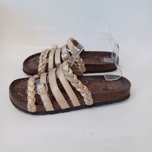 Muk Luks Sandals Gold Braided Leather Open Toe Slip On Casual Womens 10