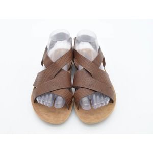 Muk Luks Sandals Womens 8 Brown Croc Print Faux Leather Slingback Open Toe