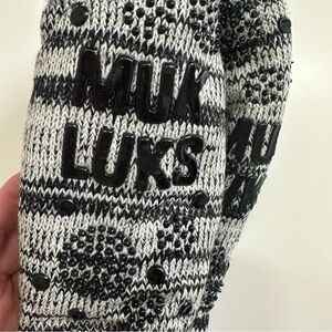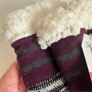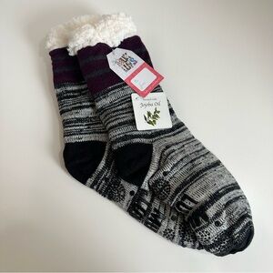 Muk Luks Sherpa Lined Black, Gray, & Purple Striped Socks with Jojoba Oil L/XL