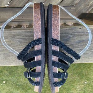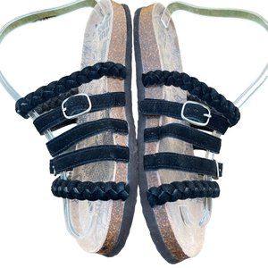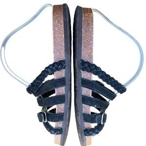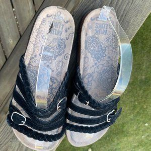 Muk Luks Terri Slide Sandals Black Suede Women 11 / 12 Strappy Flats Slip On