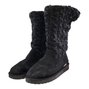 Muk Luks Women's Fold Over Cable Knit Faux Shearling Winter Boots Black Size 6