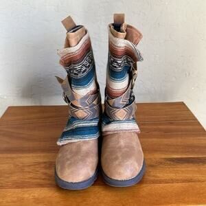 Muk Luks Women's Nikki Boot size 6 sweater material and buckle detail