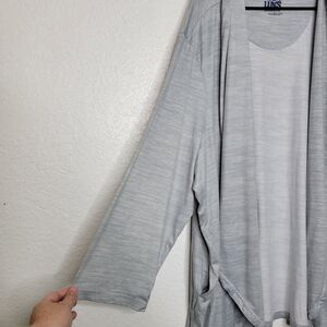 Keywords: Muk Luks, Cardigan, Sweater, Open Front, Light Gray, Plus Size, P4X, Womenswear, Knitwear, Casual, Comfortable, Long Sleeve, Drape Front, QVC