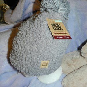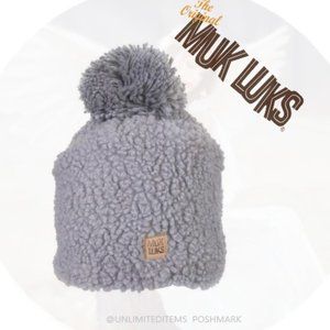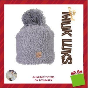 Muk Luks Women's Sherpa Pom Pom Beanie Hat Grey NWT/NEW