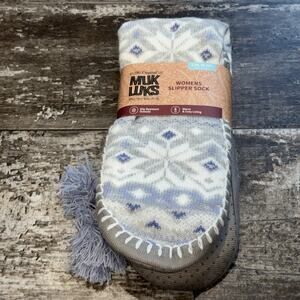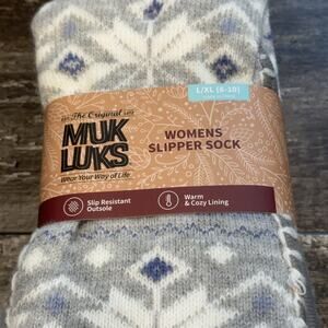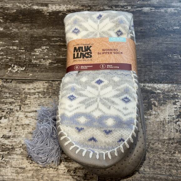 Muk Luks Womens Slipper Sock L XL 8 10 Gray Blue Knit Slip Resistant Cozy NWT
